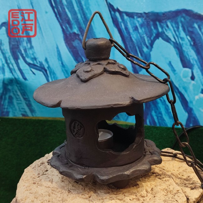 Lanterne électrifiée Tsuri-dôrô photophore ou electrique, de Ht 19 cm x Diam 18 cm, de 1,5 kg, en grès noir ingélif.
