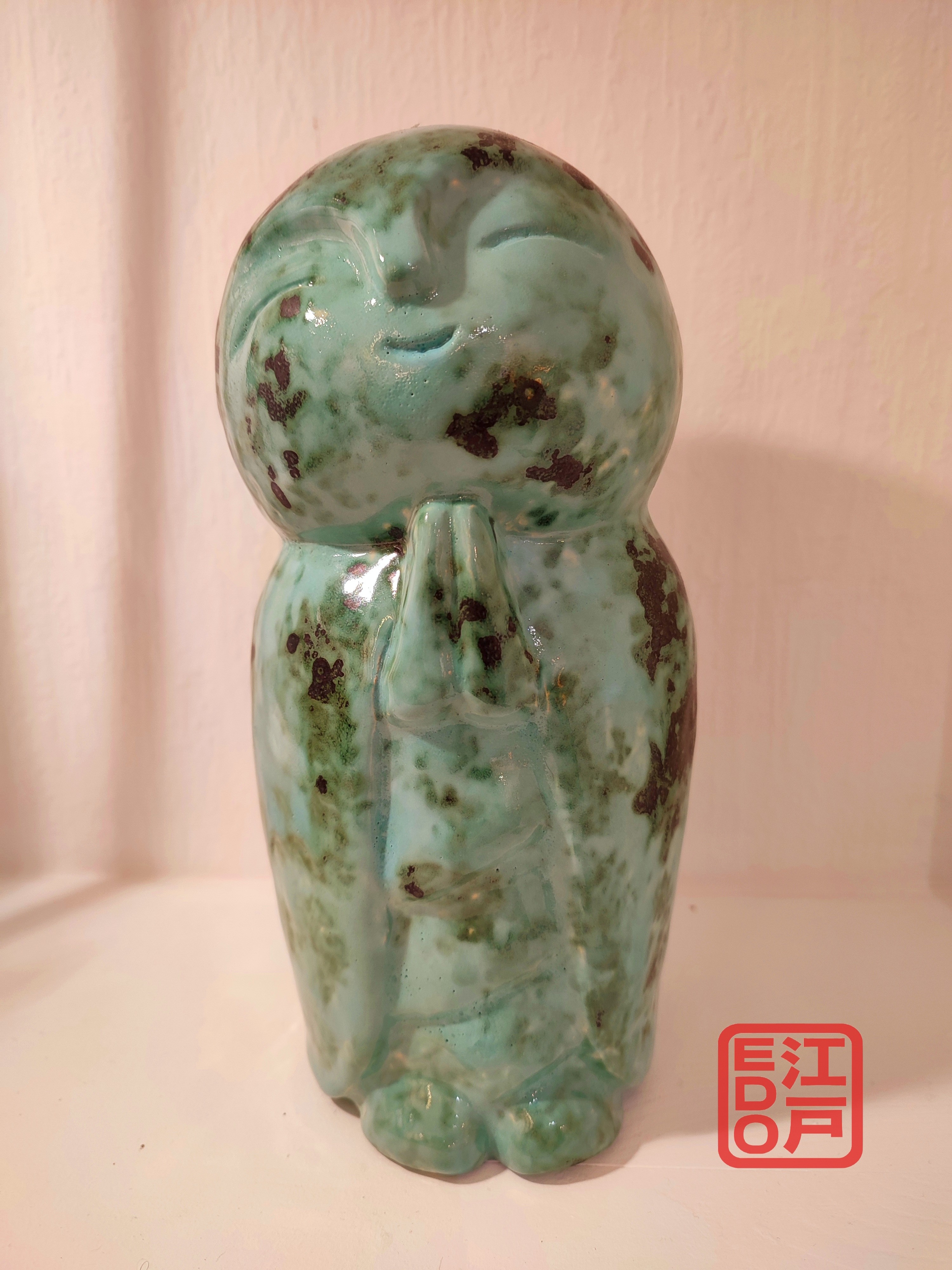 Ce jizo est fabriquée à la main en France, par mes soins et dans mon atelier. Ses qualités et ses défauts sont inhérents à son caractère artistique.